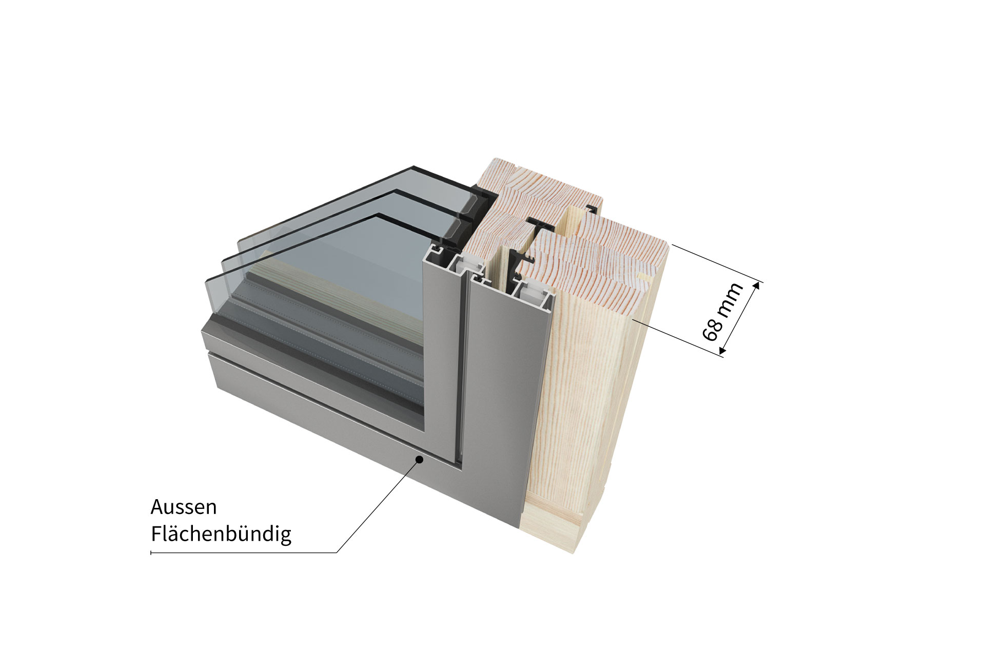 Holz Alu Fenster HM 68-84 Flächenbündig